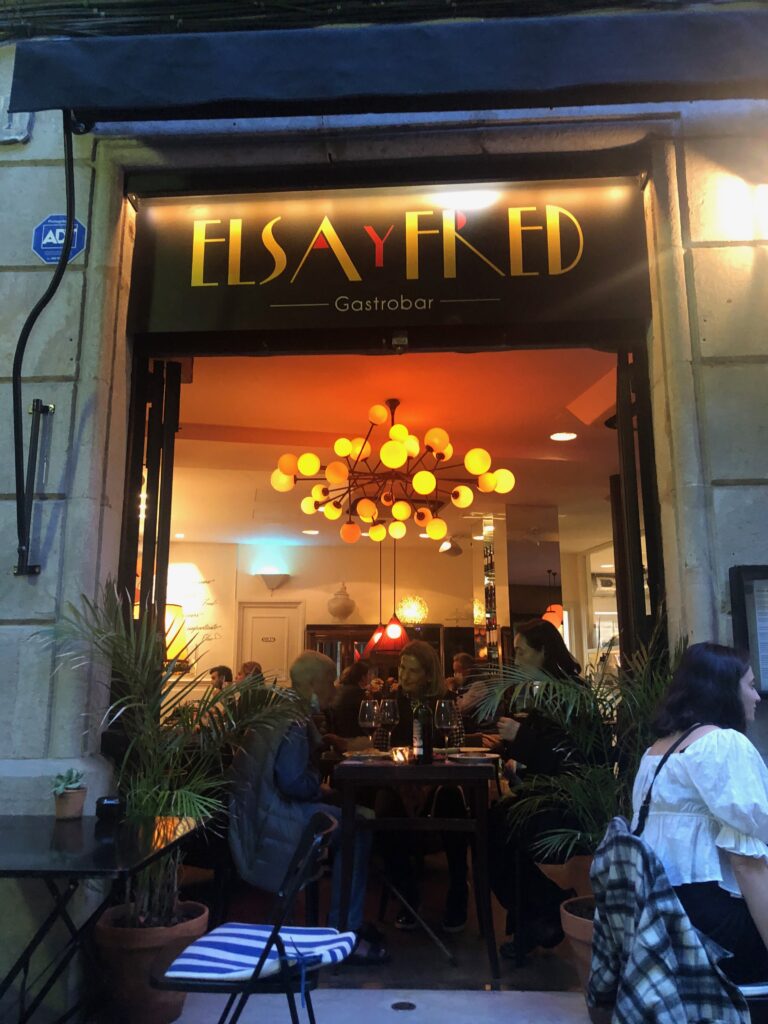 Barcelona ist jung und dynamisch. Das wiederspiegelt sich auch in der Gastronomie. Auf Empfehlung der Hotel-Réception wurde mir ein Gang in das benachbarte El Born Viertel ans Herz gelegt. Das empfohlene Casa Lolea hatte bereits für mich als Einzelperson schon keinen Platz mehr, dafür war ich im schummrig-schönen Partner-Restaurant von Elsa Y Fred (im Bild) fündig. Die Auswahl an Tapas in der Karte hat mich einmal mehr überfordert, so fiel die Wahl auf die saisonal empfohlenen Tapas. Der Salat aus grünen Bohnen, Spinat und Erbsen war nicht nur eine Vitamin- sondern auch eine Geschmacksbombe und das Gleiche galt auch für den Taco mit (sehr) scharf angerichtetem Steak Tatar als Füllung. Schönes Interieur und freundliche KellnerInnen.