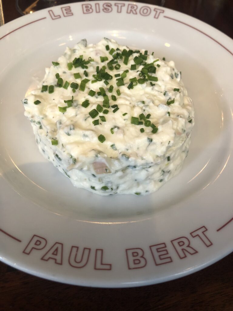 Meine Wahl fiel zur Mittagszeit auf das „menu fixe“, wo ich zur Vorspeise das „cervelle de canut“ gewählt habe und zwar fest in der Erwartung, dass mir das auf Google-Deutsch übersetzte „Gehirn des Kanuten“ serviert werden würde. Anstelle dessen gab es einen Käseaufstrich, der aus Lyon stammt und angereichert mit Kräutern und dem immerzu knusprigen Brot die wohl bessere Option als Kanuten-Hirn war. Ebenso knusprig im Übrigen waren die hausgemachten Pommes Frites zum Fleisch (das Namen des Fleisch‘ habe ich vergessen, aber es war sehr gut). Ein Traum war das Dessert: Die Crème brûlée war wunderbar cremig und der Deckel perfekt knackig.