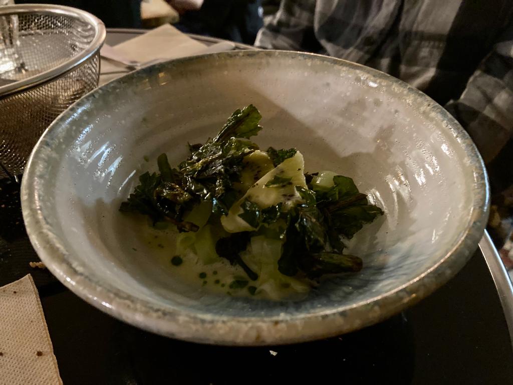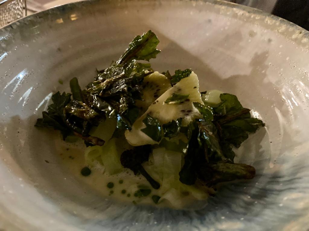 Wir haben zu zweit 5 Gerichte bestellt, denn die Kellnerin teilte uns gleich von Anfang an mit, dass es die Meinung ist, diese Gerichte resp. Tapas miteinander zu teilen. Sie hat sich zum Glück auch die Zeit genommen, jedes Gericht auf der französischen Karte auf Englisch zu übersetzen. So haben wir tatsächlich erfahren, dass es stimmt, was auf der Karte steht: Dass sich hier z.B. ein Gericht aus Lauch, Broccoli, Pastis-Schnapps und Kiwi zusammensetzt.